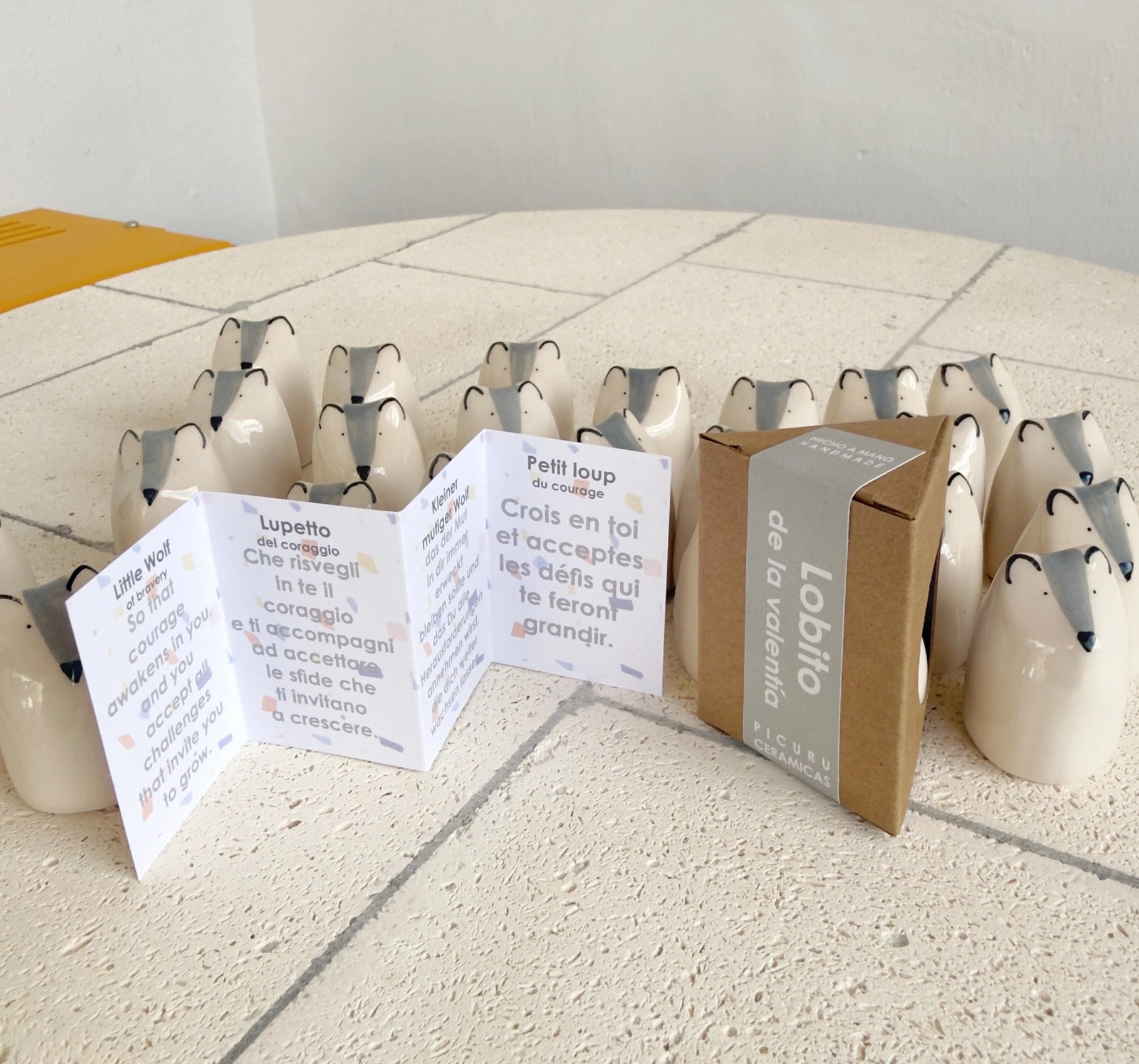 Il est livré dans sa boîte de présentation et une petite carte avec un message en 5 langues.