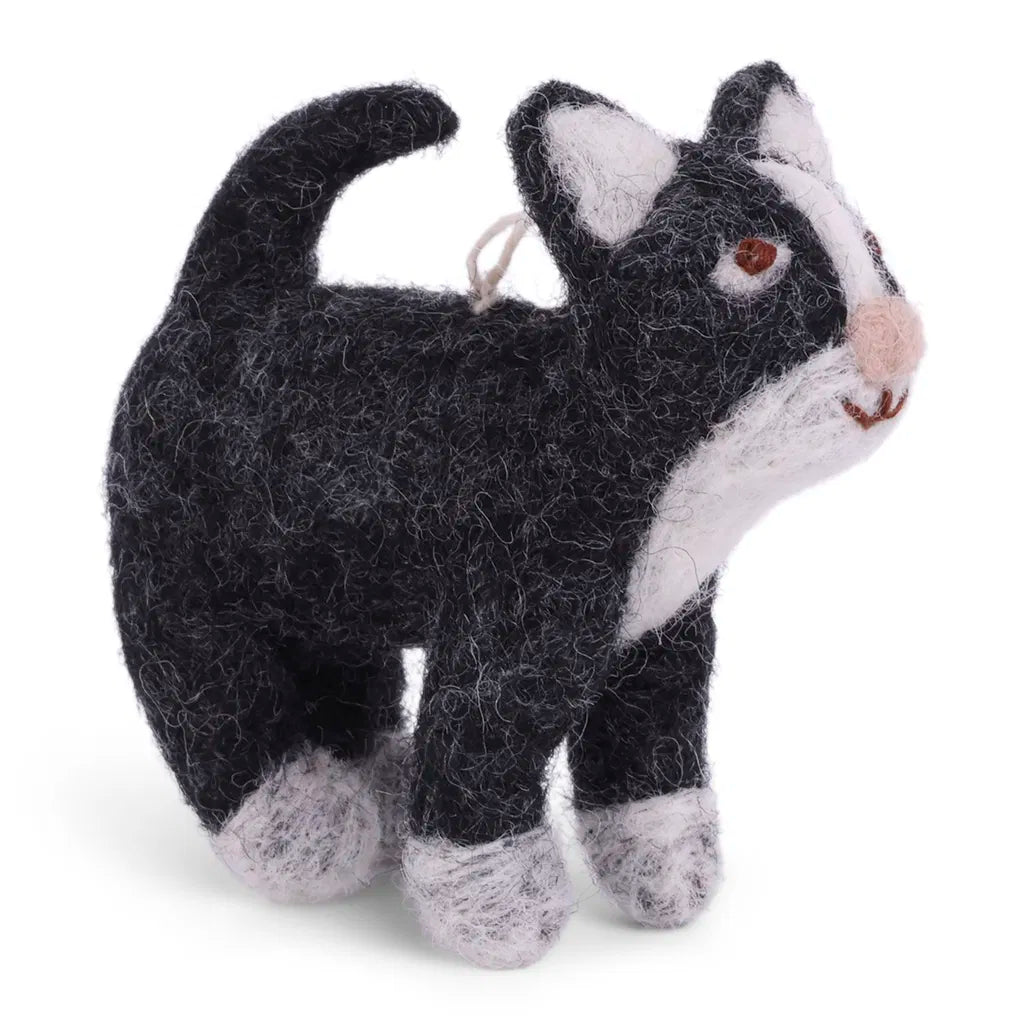Petit chat à suspendre en laine feutrée