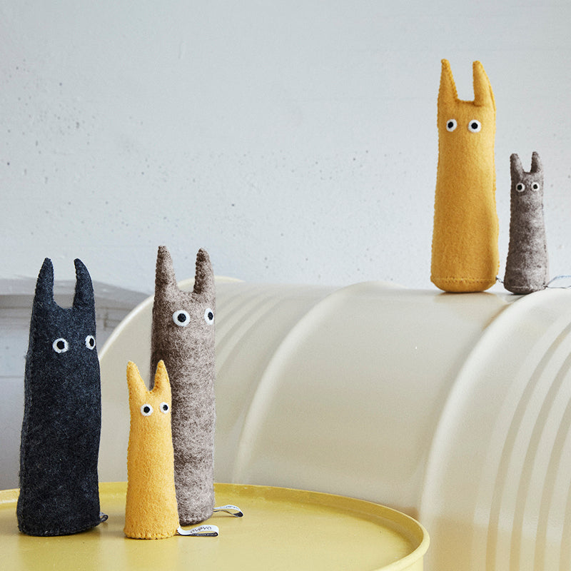 Ces chats sont hypoallergéniques : ils sont réalisés en laine (biologique, renouvelable et biodégradable) et garni de kapok (naturellement hypoallergénique, un excellent choix pour les personnes allergiques ou sensibles. Il est naturellement résistant aux acariens)