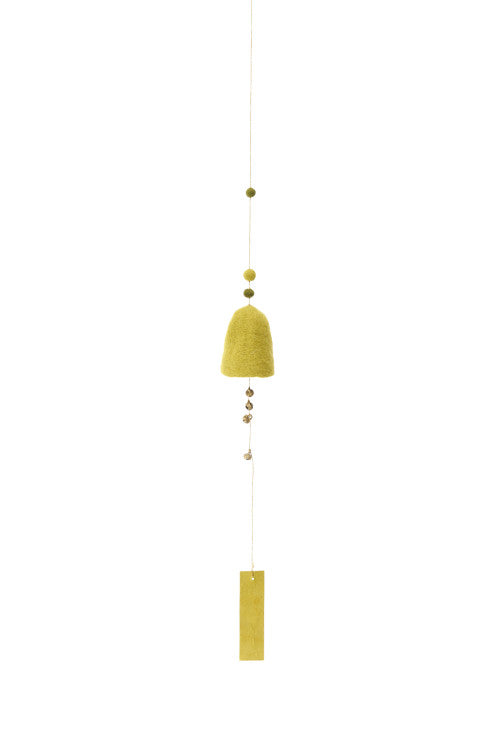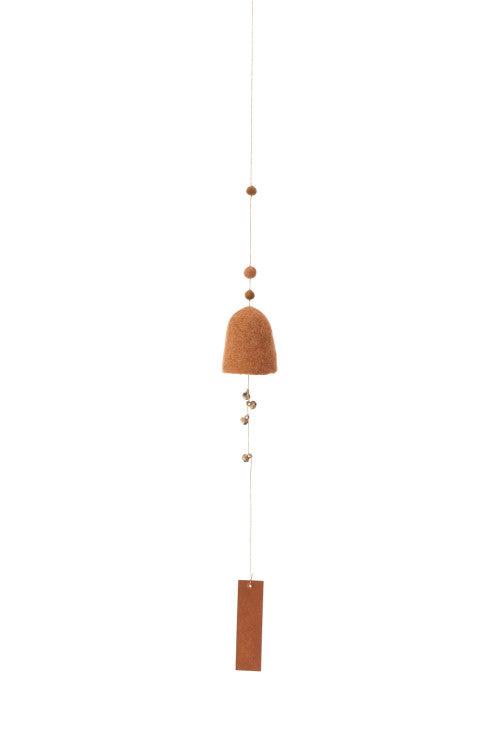 Inspirée des cloches que l'on retrouve accrochées aux toits des temples népalais, MUSKHANE a créé sa CLOCHE à vent en associant du feutre, des grelots en laiton et du papier népalais. Entièrement réalisée à la main dans nos ateliers, le mariage des matières créé un accessoire de décoration dont la poésie rayonnera dans toute la pièce où vous l'accrocherez !