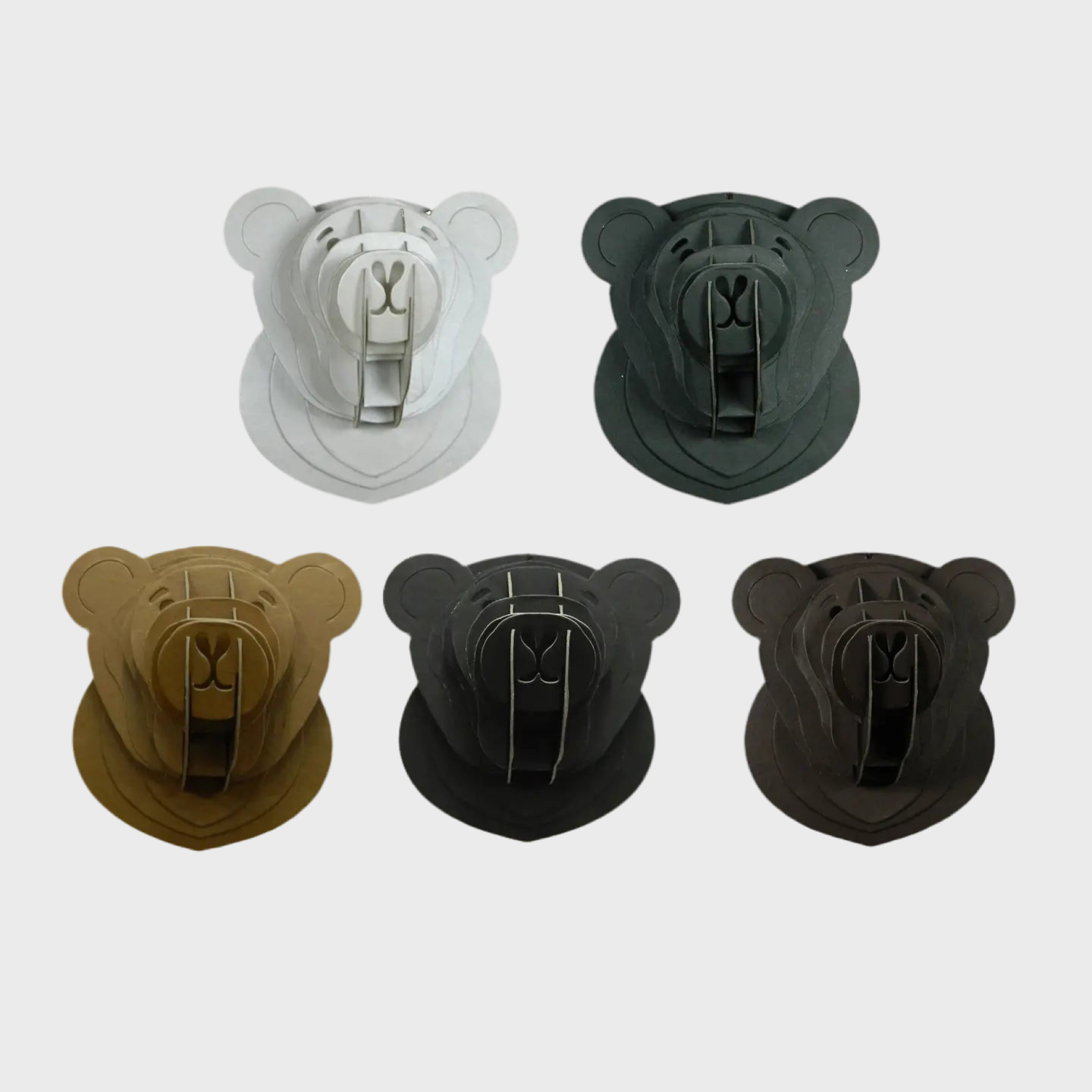 Une tête d'ourson ronde et souriante pour orner les chambres d'enfant.